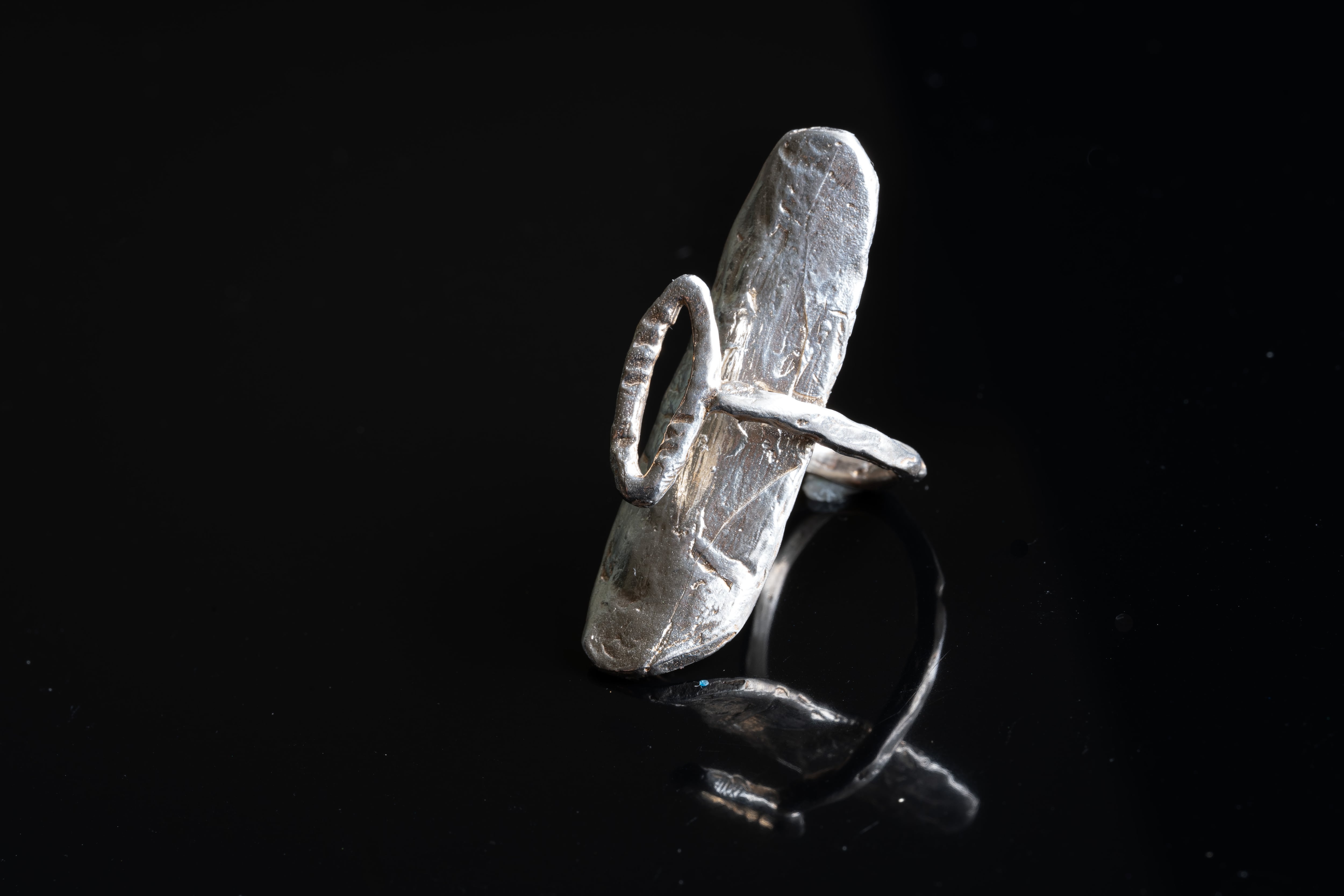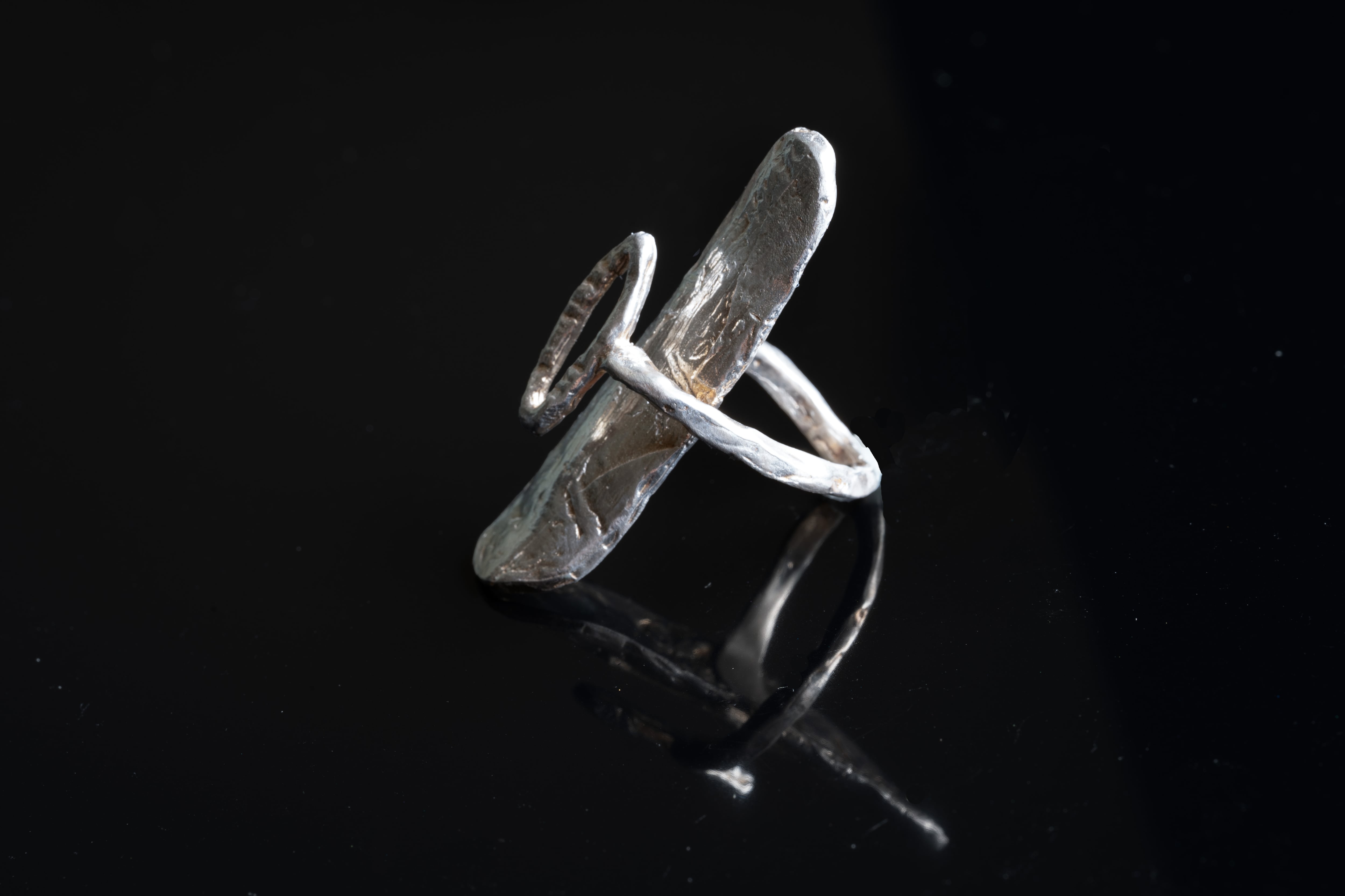 <アブストラクト>シリーズ。抽象彫刻のようなフォルムが特別な存在感を放つ本シリーズは、様々に組み合わせてオリジナルなコーディネートをつくりだすことができます。カジュアルに・・・モードに・・・ジェンダーレス・エイジレスにお楽しみいただけます。本シリーズは、アイテム全て受注制作を承ります。サイズはフリーサイズですが、テクスチャー仕上げでシルバーかゴールドをお選びいただけます。
